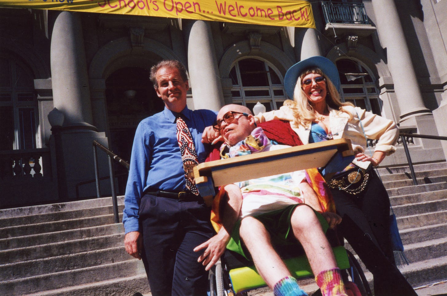 Kriss Worthington, Frank Moore and Dr. Susan Block together for the Berkeley Anti-Censorship Press Conference, September 2002.